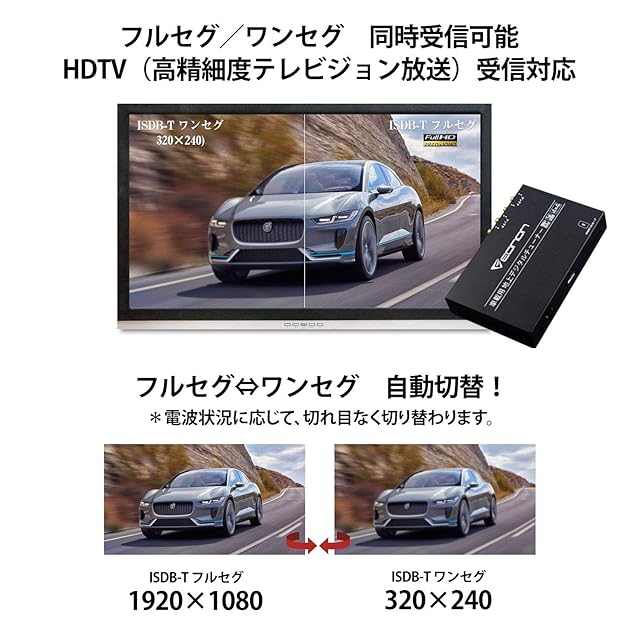 【フルセグ/ワンセグ自動切替】V0050地上デジチューナーはフルセグもワンセグも受信でき、同時受信可能です。HDTV受信対応で高精細度テレビジョン放送を実現します。ISDB-T フルセグ(1920×1080);ISDB-T ワンセグ(320×240) フルセグとワンセグの自動切替も対応できます。電波状況に応じて、切れ目なく切り替わります。