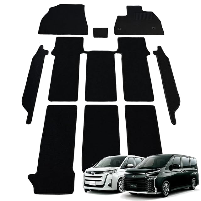 フェニーチェ カーマット フロアマット ステップマット セット 国内生産 (トヨタ ノア ヴォクシー 90系) < ガソリン車 / 7人乗り / センターコンソールあり用 > ブラック 滑り止め形状 ずれにくい 車用 マット (車用品専門店)