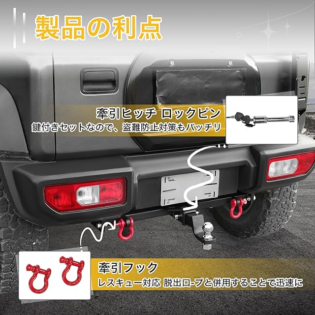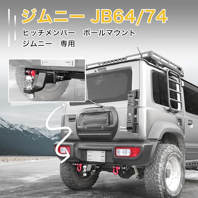 AMWMORV Jimny JB64 ヒッチメンバー シャックル付き メンバーヒッチボール ブラックパウダーコーティング ジムニー JB74ヒッチキャリア トレーラー フルセット 車牽引