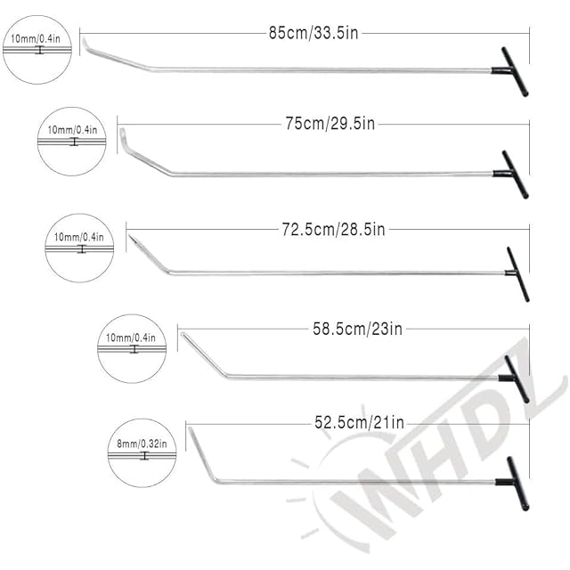 【デントリペアツール】この車凹み修理工具は長さや太さが違ったA型とC型デントリペアツール11本のがあり、凹みのサイズや程度によって最適なツールを選択できます。