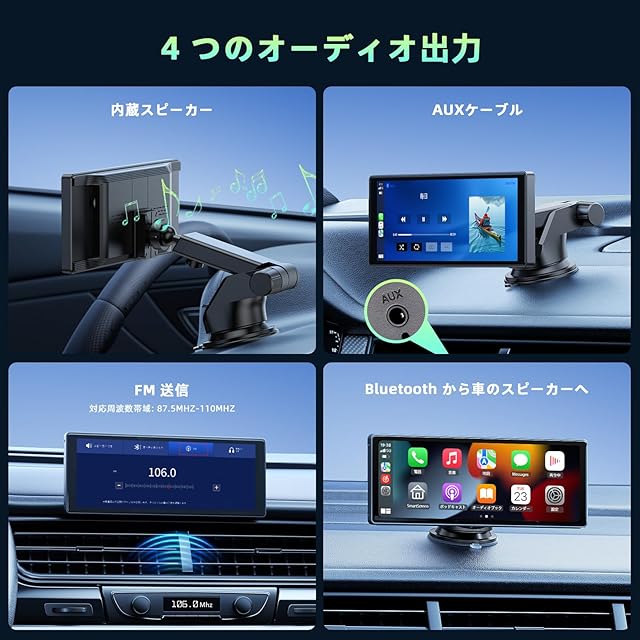 【アップグレードされたBluetooth 5.0ステレオ出力】Apple Car Play のBluetooth接続方法がアップグレードされました。 Bluetooth を使用してカーオーディオのスピーカーに音声を無線送信して再生することで、カーオーディオ本来の再生体験を楽しむことができます。 さらに、FM送信とAUX出力もサポートします。
