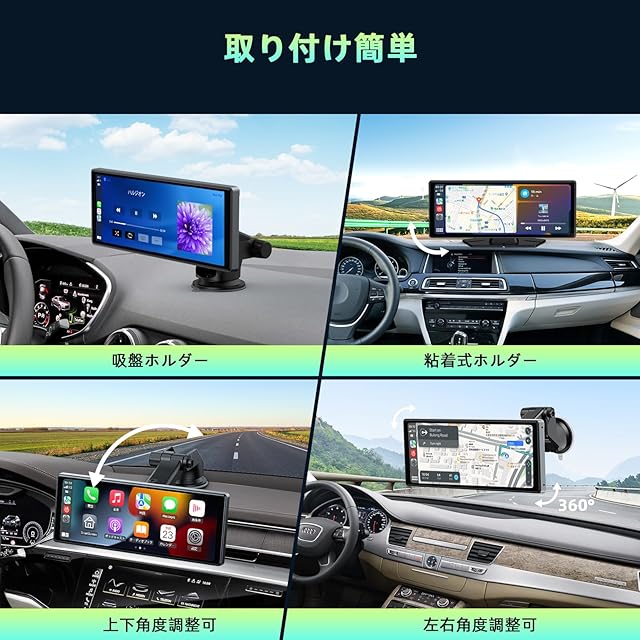 【99% の車に適合 + 取り付け簡単】 LAMTTO ディスプレイオーディオには、360 度回転可能な吸盤マウントと粘着ブラケットが付属しており、ダッシュボード コンソールやフロントガラスに固定し、簡単に取り外すことができます。。 さらに、12〜24Vの電圧の シガーアダプターから電源が供給され、ほぼすべてのタイプの車、トラック、キャラバン、バン、トレーラー、キャンピングカーなどに適しています。