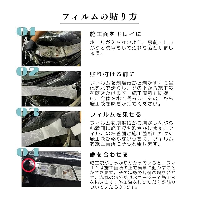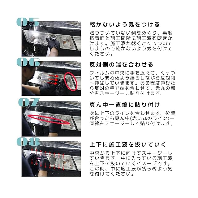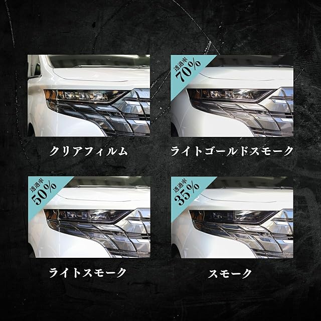 伸縮性:フィルムは約4倍も伸びるほど伸縮性があるため、立体のヘッドライトにもフィットします。