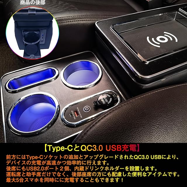 Buy it スズキ ソリオ コンソールボックス バンディット MA15S MA26S MA36S MA46S デリカD2 MB36SコンソールアームレストSOLIOに適合センターコンソールボックス ブルーLED 急速充電 Type-C QC3.0 USBポート (スライド式 ワイヤレス充電)