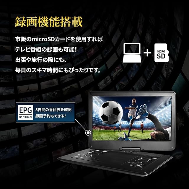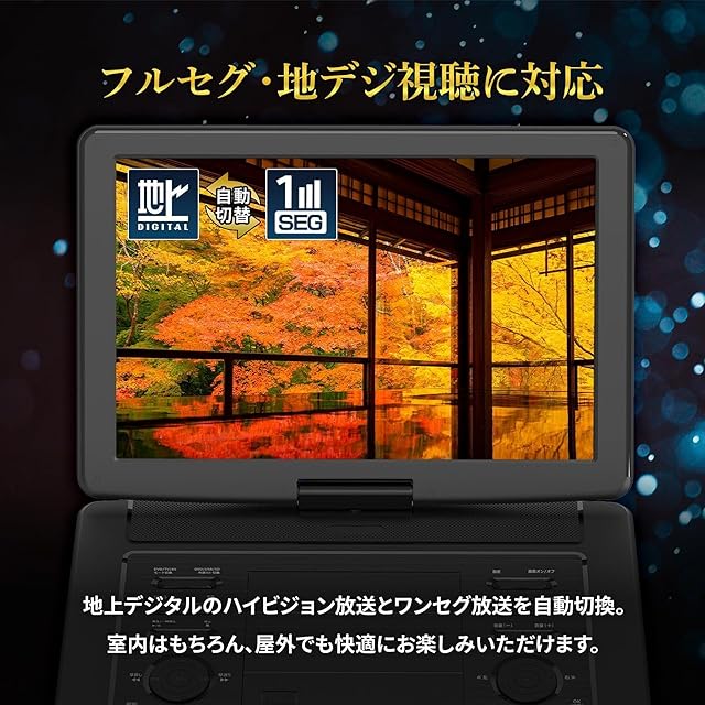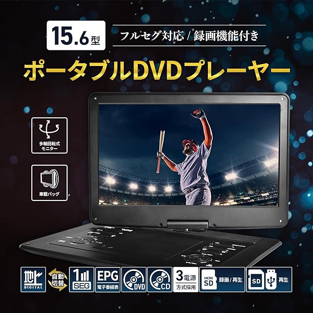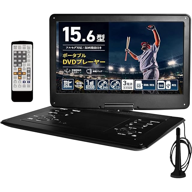 [東京Deco] 地デジ 録画機能搭載 15.6型 ポータブルDVDプレーヤー フルセグ 15.6インチ [大型画面15.6V!地デジ録画機能] 大画面 cprm対応リージョンフリー 充電 地デジ 180度回転 15型 液晶 スクリーン 大容量充電バッテリー 車 10 12 14 o000