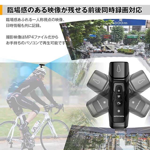 MAXWIN ドライブレコーダー 2カメラ 前後同時録画 ヘルメット バイク 自転車 WiFi 200万画素 Full HD IPX4 防水防塵 microSDカード microSD32GBセット BDVR-A001-SET1