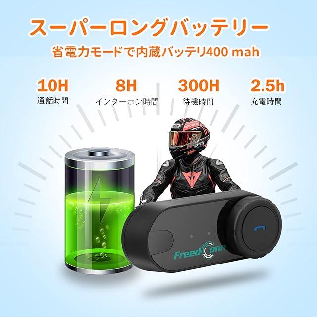 小型で低消費電力バッテリー内蔵:T-COMは、小型且つ軽いし、重くてかさばるイヤホンをつけるのが苦手なモーターサイクル愛好家に最適です。400mAhの低消費電力バッテリーを内蔵し、満充電での待機時間は1週間160H、10時間の連続通話、9時間の音楽鑑賞が可能です。