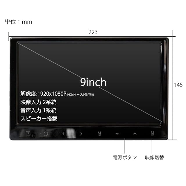 解像度:1024*600(HDMI時1920×1080対応 )・電源:DC12-24V