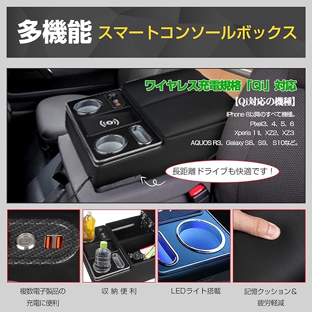 【装置簡単】工具不要!コンソールボックスに差し込むだけで簡単に取り付けできます。アームレストの中に収納スペースといったドライブの快適性に欠かせない機能も集約されているので、スマートキー、スマホ、タバコ、財布、手帳、カード、チケットなど様々な小物を収納できます。