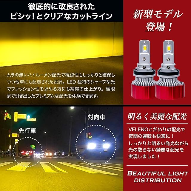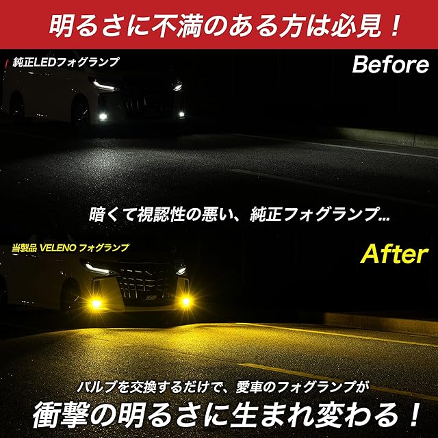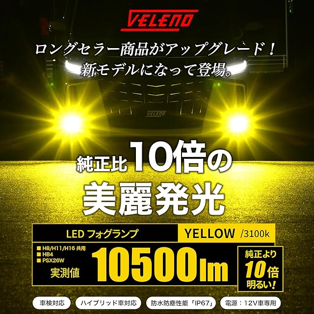 VELENO LEDフォグランプ H8 H11 H16 イエローフォグ 驚異の実測値 10500lm エントリーモデル 爆光 車検対応 黄色 3100k 12v 2球セット (H8/H11/H16 10500lm)