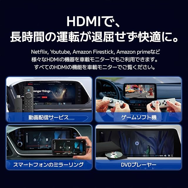 ✨【HDMIポートで楽しむ高画質映像】最大2K(2560×1440)、60Hzに対応。動画視聴やナビ画面もくっきりと鮮明に表示され、滑らかで高精細な映像をお楽しみいただけます。(ご使用の車両が対応する最大解像度が2K未満の場合、表示解像度が制限される場合がございます。)