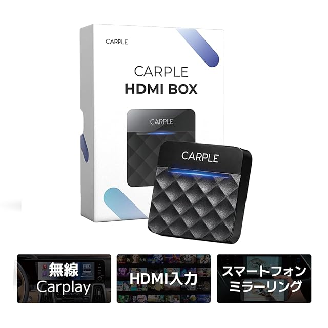 Carple HDMI BOX【HDMI入力・無線CarPlay・スマートフォンミラーリング対応】3in1車載マルチメディアアダプター|TV Stick/DVDプレイヤー/ゲーム機など hdmi入力端末に接続|iPhone/Android画面共有対応|有線CarPlay搭載車専用|技適取得済(CARPLE-CHB)カーナビでユーチューブを見る
