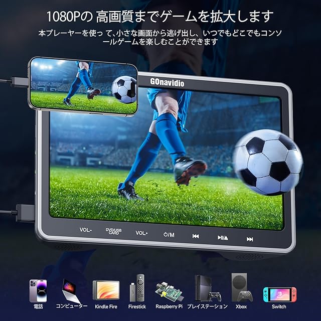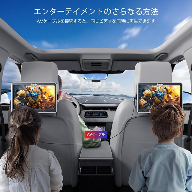 GOnavidio ヘッドレストモニター dvd 2台セット スロットイン HDMI入力 スマホ同期 DVDプレーヤー 車載 10.1インチ CPRM レジューム リージョンフリー ヘッドセット 2個1080P動画 SD USB