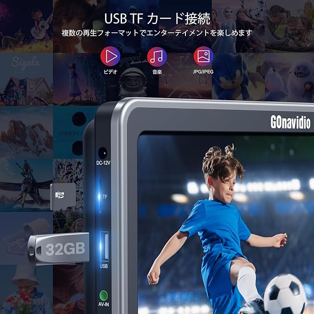 【スピーカー内蔵・USB/SD・取り付け簡単】デュアルスピーカー内蔵、高品質スピーカー。 モバイルDVDプレーヤーの内蔵USB / TFポートは最大32GBをサポートし、VOB、AVI、MPEG 1/2、XVID、MPG、3GPなど、さまざまなビデオ再生形式と互換性があります。取り付けプラケットが調整可、鑑賞しやすい角度で固定し長時間の移動も疲れないベストポジションでお楽しみいただけます。シガーアダプター付属:ケーブル1本で2個DC端子仕様、2台モニターに同時給電可能、シガーソケット分配器必要はなく、とても便利。