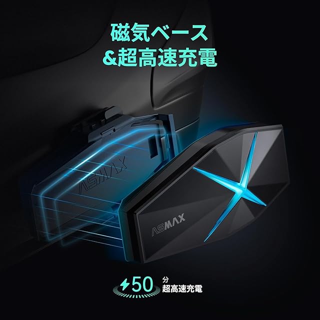 【マグネット式取り付け&超高速充電】ASMAXバイク用インカムは磁気式ベースを採用し、取り外しと取り付けが簡単で、しっかりと固定できます。1250mAhのバッテリーは50分でフル充電可能。走行中でも充電でき、最大20時間の連続使用をサポートします。