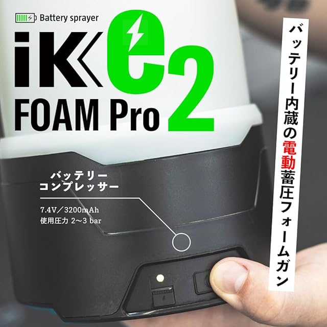 【 日本正規品 】 iK e FOAM PRO 2 電動 フォームガン アイケイ eフォームプロ2 充電式 バッテリーコンプレッサー内蔵 日本語説明書 保証付 蓄圧式スプレー 泡洗車 バッテリー駆動