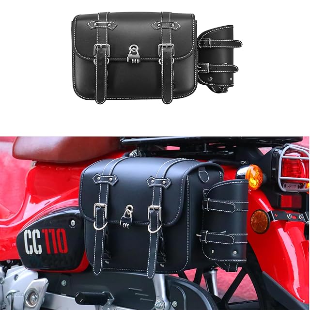 Yoothi 互換品 ホンダCC110 用 スーパーカブ 50/110 Cross Cub CC50 バイク サイドバッグ サドルバッグ 大容量 ドリンクホルダー付属 金具防錆 小物収納 サイ取付ブラケット付きドバッグサポート付き セット バイクサイドバッグ サイドバッグ サドルバッグ 防水 耐久性 汎用 フレームバッグ ブラック サイドバック スーパーカブ サイドバッグ(左右1セット)