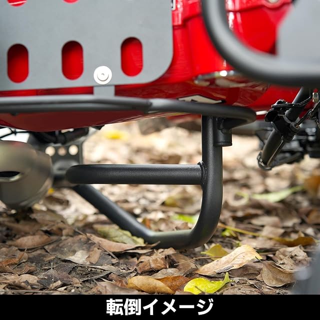 【車種専用設計】メインパイプには約Φ20mmのパイプを採用しており、市販のホルダーの取り付けにも対応可能です。車体に馴染むマットブラック塗装で、目立ちにくく、キズもつきにくい仕上がりです。純正のスキッドプレートと併用可能です(※取り付け穴にはネジ山がないため、ボルトとナットで固定してください)。
