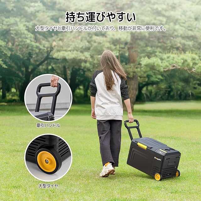 【キャスター付き&牽引ハンドル付き】片側に車輪が付いており、もう片方には牽引用の取っ手もあるため、移動は非常に便利です。【アプリ制御可能】専用アプリに接続すれば、約10m離れた場所でも、スマホで温度の確認や設定の変更などが可能です。