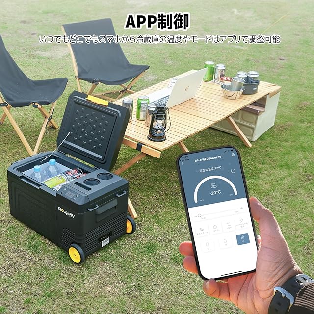 BougeRV ポーダブル冷蔵庫 車載冷蔵庫 19L -20℃~20℃ 急速冷凍 バッテリー内蔵可能 APP制御 3WAY電源対応 DC12V/24V AC100V コンプレッサー式 車載冷蔵冷凍庫 静音 大容量 省エネ 車載家庭両用 庫内灯付き AC・DCコード付き 車中泊 キャンプ アウトドア 釣り 災害時に大活躍 CRD Mini 19L ブラック
