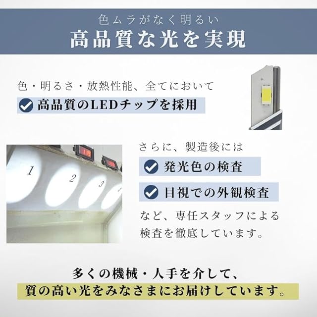 【純正と同じ発光点】 ledチップ同士を近づけたことで、純正ハロゲンと同じほぼ360°発光を再現しました。単に明るいだけでなく、純正と同じ発光点にすることで死角が生まれず、その明るさが最高のパフォーマンスを発揮します。発光点位置や台座の位置も純正同様に設計しているため、眩しすぎると発生するグレア光やカットラインの乱れを解決し、歩行者・対向車の眩しいを防ぎます。