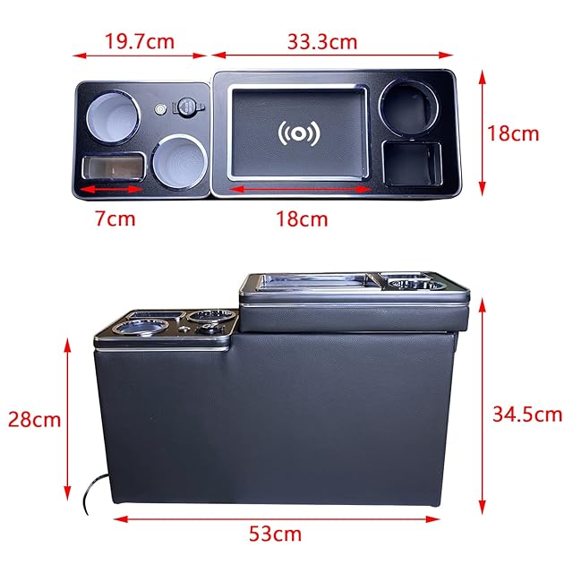 適合車種:80系 70系 60系 NOAH VOXY ESQUIRE。サイズ:53*35*18cm,重量:6kg。本コンソールボックス汎用品ですので運転席と助手席の間に18cm以上のスペースが確保出来、床面が平らなお車でしたらお取付けが可能でございます。※ご注意:ハイブリッド車に適用できません。ハイブリッド車のタイプがほしいお客様が弊社のほかの商品をお選びください。