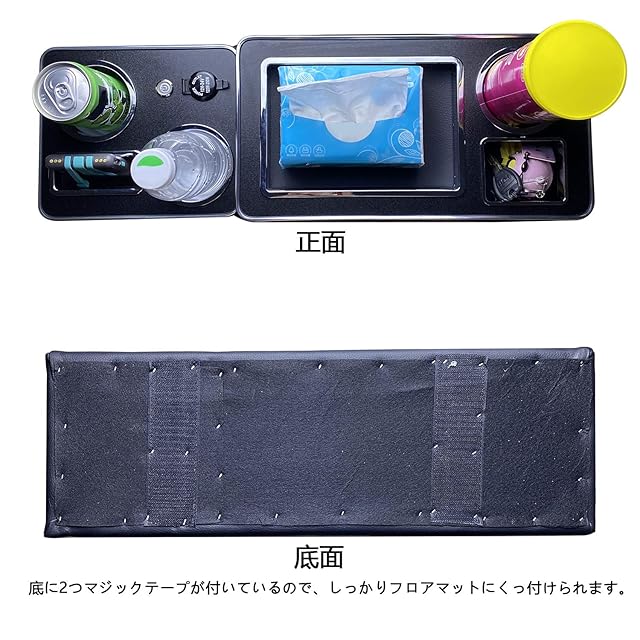 素材:木+レザー+ ABS,カラー:ブラック,ホワイト二種色があります。本体の底に2つマジックテープが付いているので、しっかりフロアマットにくっ付けられます。表面に上質なレザーを使用、高級感のある質感の生地で、摩擦にも強くて、汚れがつきにく、しっかりした作りです