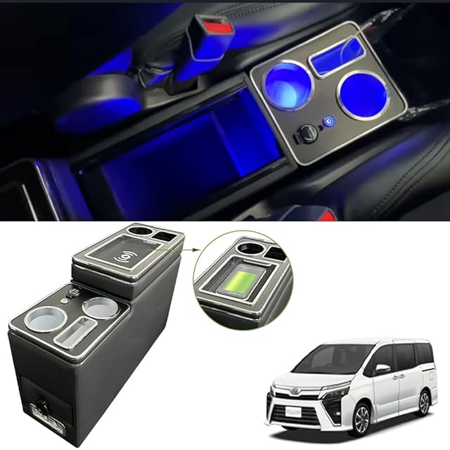 SGALUPA ワイヤレス充電 ヴォクシー適用 ノア エスティマ適用 エスクァイア適用 コンソールボックス トヨタに適用 アームレストコンソール 80系 70系 60系 NOAH適用 VOXY適用 LED付き USBポート 取付簡単 多機能 収納ボックス
