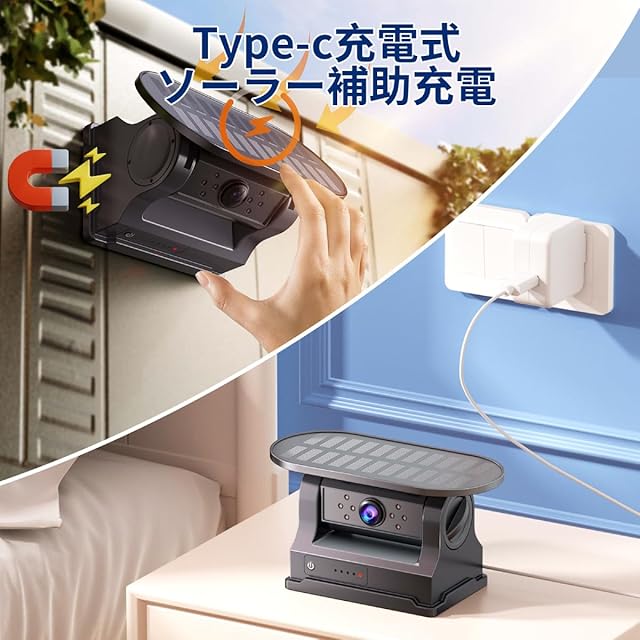 【太陽エネルギー/USBダブル充電】スマホ バックカメラの本体は充電ポートとソーラーパネルを搭載し、普段はusb充電が主で、太陽光で充電を補助することもできます。※初回使用前に8時間充電してください。普段充電しないとき、充電ポートの防水蓋をかけてください。ご注意:温度やスピードなどの影響で、カメラの稼働時間が短縮される可能性があります。