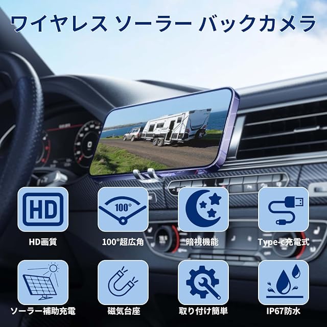 HUAJUN ワイヤレス ソーラー バックカメラ スマホに対応 革新技術 車の後方歩行者 車両認識 AHD技術採用 100°超広角 バックカメラ ワイヤレス ソーラー 超長距離信号受信 上下左右画像逆転可能 DIYガイドライン 暗視機能 フロントカメラ ソーラー iPhoneスマホに対応 トレーラー RV トラックに対応 IP67防水