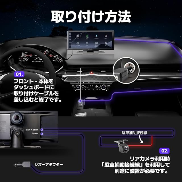 【✨使いやすさ抜群】ダッシュボードに 取り付けるだけで3秒で簡単に設置が完了します。小型車から大型車まで完璧に互換します。また、シンプルで直感的なUI/UXは、カープル独自のデザインで作られており、簡単に操作できるため、非常に使いやすいです。