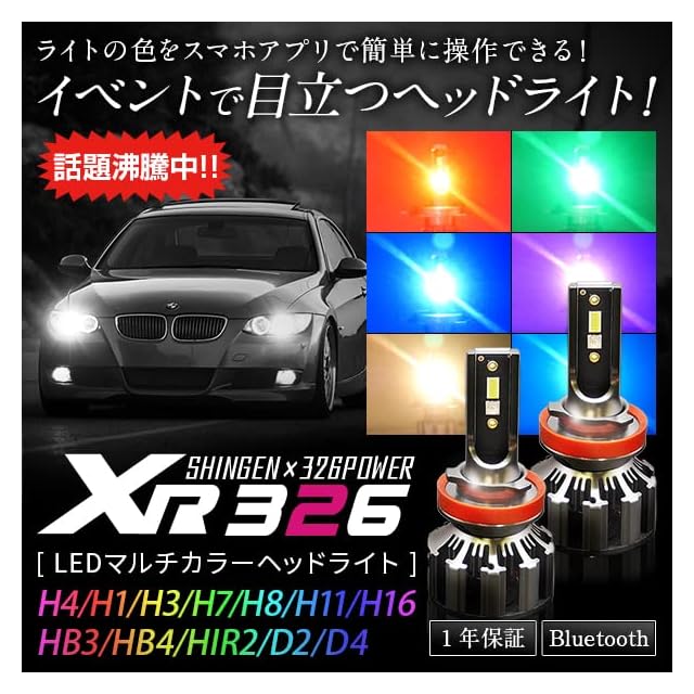 信玄×326POWER Bluetooth搭載 RGB LEDマルチカラーヘッドライト XR326 H4 12V 24V