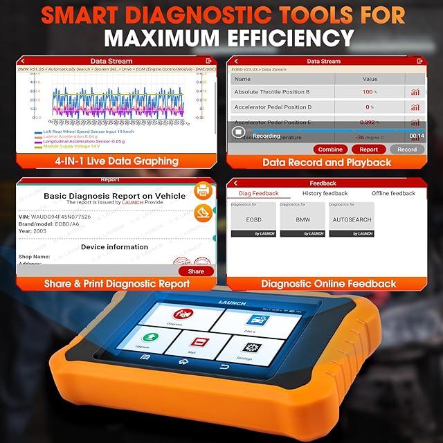 【オールインワン機能】 LAUNCH X431 Elite のアップグレード、2025 LAUNCH X431 Elite 2.0 PRO は、高度な Android 8.1 OS と 4 インチ タッチスクリーンを搭載した BMW OBD2 スキャナーに適合し、高速起動で診断がよりスムーズになります。 より簡単で高速な操作体験を提供します。 また、機能も豊富です: 詳細な完全なシステム診断、完全な双方向制御、ECU コーディング、すべてのサービス、10 個の完全な OBD2 機能、自動 VIN、ライフタイム アップデート。 BMW/MINI/ロールスロイスのオーナーの必需品。