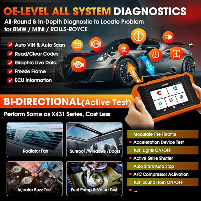 【OEレベルの全システム診断】 市場のトップドッグとして、LAUNCHはその強力な診断機能で有名です。 2025 年に新たにアップグレードされた LAUNCH X431 Elite 2.0 PRO は、BMW/ミニ/ロールスロイスに適合する完全な診断ツールで、利用可能なすべてのモジュールに対して包括的かつ詳細な診断を提供します。 コードの読み取り/クリア、データ ストリームの表示、フリーズ フレームの取得、ECU 情報の読み取りなどをサポートしており、車の状況を簡単に把握し、問題をすぐに特定できます。