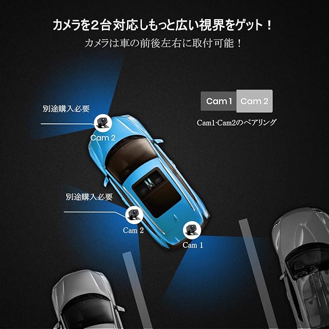 【2台のカメラをサポート】お客様の意見に参考して、今回は2台のカメラが対応できるバックカメラモニターセットを開発しました、車の前後左右に取り付けることができます。また画像をCAM1とCAM2の間で自由に切り替えることができるため、運転中死角が大幅に減少します。 後進時の障害物を回避するのに役立ちます。バックの安全性と効率を大幅に向上させます。ご注意:2台目のカメラは付属されていないので、必要な場合は、当店で別途購入してください(ASIN:B0B7MNMXBS)。