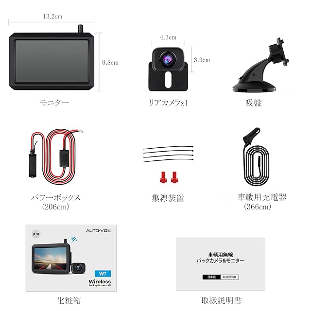AUTO-VOX W7PRO ワイヤレス バックカメラモニターセット 無線 バックモニター デジタル信号 高い安定性 干渉なし IP68防水 HD画像 暗視機能 ワイヤレス バックカメラ ガイドライン機能 正像・鏡像切替対応【2カメラ対応】