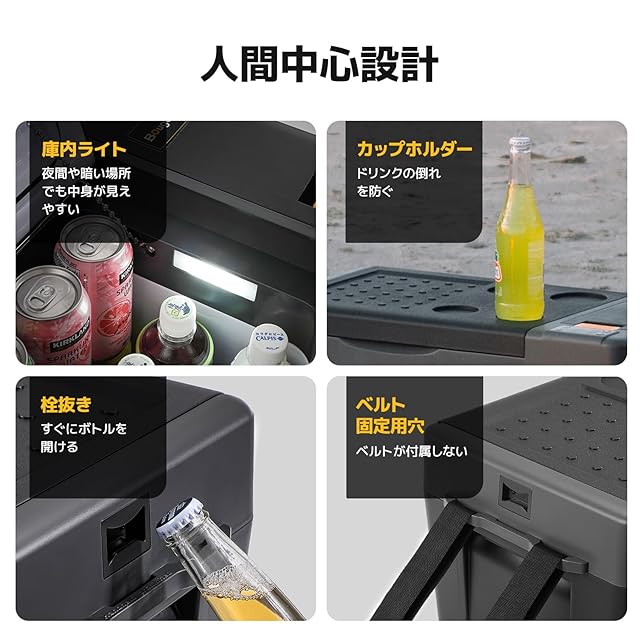 【バッテリー駆動でどこでも使える】BougeRV CR Pro 20L車載冷蔵庫は、別売りの220Wh専用バッテリーを内蔵することができます。このバッテリーにより、車のエンジンを停止した状態や電源がない場所でも冷蔵庫を最大14時間稼働させることができます。車中泊やキャンプ、BBQ、釣りなど、いろんなアウトドア活動にとても便利です。ら4本も入れられます。