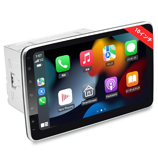 IYING Androidカーナビ 2DIN 10インチ プレーヤー・レシーバー 4コア 4GB+64GB大容量 ワイヤレスCarPlay&Android Auto対応 ミラーリング WiFiでYouTube等使用可能 2画面表示/角度調整/取外し可 大画面 一体型 スマートカーナビゲーションBulethooth バックカメラ付きカーオーディオ【技適取得済み品】