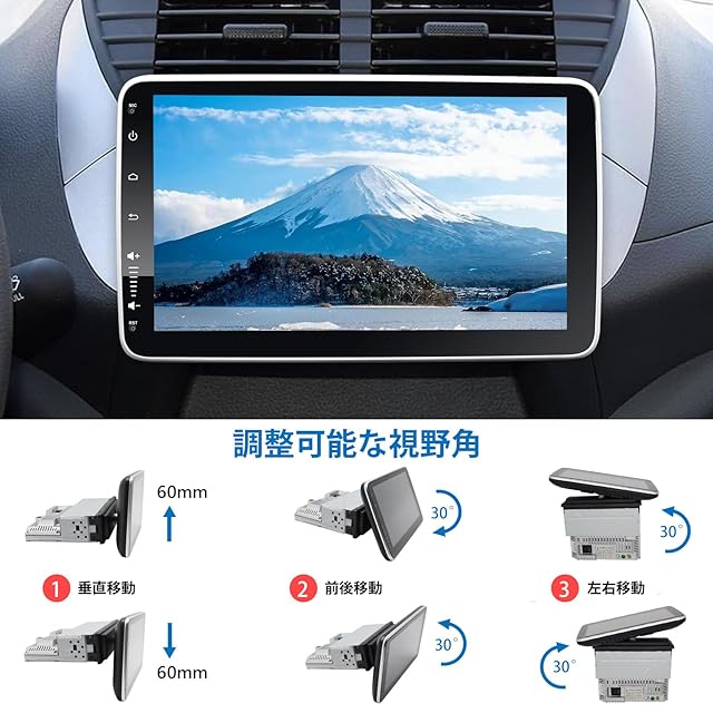 【10.1インチQLED大画面のディスプレイを採用】この10インチモニターは、角度調整ができて横や斜めに表示可能です。運転席からの見やすさを向上させ、安全運転を助けます。分離できるので、設置も簡単です。10.1インチQLED大画面カーディスプレイオーディオは1280×720pixelの高解像度のタッチスクリーンを採用し、ディスプレイは取り外し可能で、角度も自由に調整できます(前後に約30°傾斜、左右に約30°傾斜、垂直に約5cm移動)より良い視野角を楽しむことができます。 物理的なノブデザインにより、ボリューム/ミュート/電源スイッチを簡単に調整できます