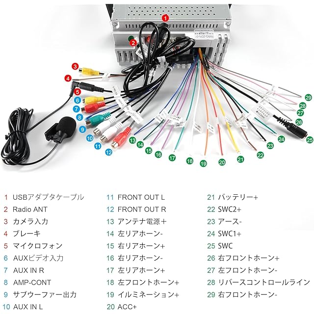 【各種実用的機能を搭載】画面分割機能で2つのアプリを同時に使用可能、ナビゲーション地図をメイン画面で表示しながら、同時にSpotify音楽再生することができます。■GPSとBeidouなどを組み合わせたナビ機能を搭載され、お好みの地図ソフトをご自由にお選びいただけます。さまざまな情報を提供されます。■バックカメラを使用され、バックギアに切り替えた際に、車の後方の状況をを表示できます。前進ギアでも、ディスプレイ上のバックカメラ アイコンをクリックして後方の状況をリアルタイムで確認できます。■メディア再生:2つUSBより、いつでも映画、音楽、動画などを楽しむことができます。■高品質のデジタルステレオFM/AMラジオで、日本の周波数FM:76-95MHz/AM:530-1710KHzに対応。ニュースや交通情報をいつでもどこでも聞けます。■外付けDVDと地デジチューナーに対応。RCAケーブルでテレビやDVDの動画が見られます