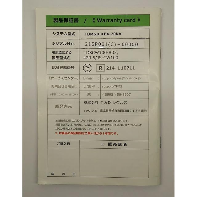 ● 「技適認証」取得済みのワイヤレス式タイヤ空気圧モニタリングシステム