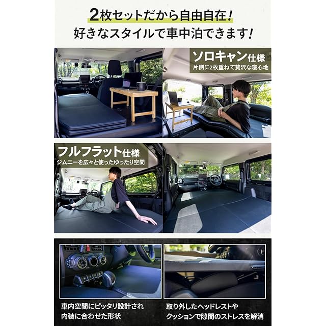 LikeOne 2枚セット 新型 ジムニー シエラ JB64 JB74 車中泊 マット フルフラット マットレス 2人 ジムニーシエラ 車中泊マット 段差解消 グッズ フラット ベッド キット 内装 180cm キャンプ カスタム カスタムパーツ パーツ アクセサリー 釣り ソロキャンプ ジムニー専用