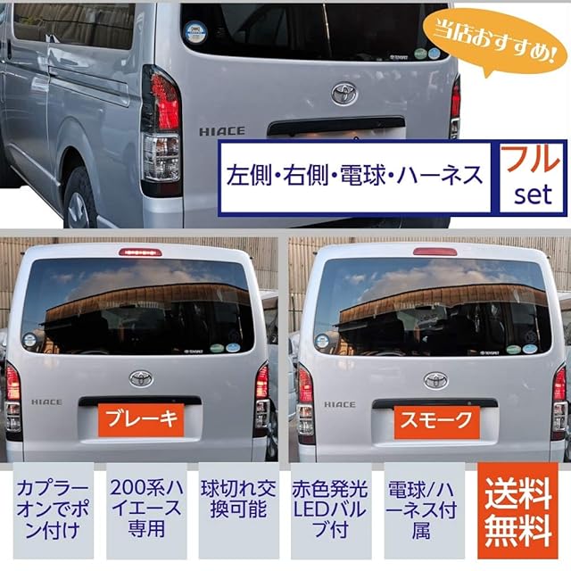 VLAND 200系 1型-8型対応 ハイエース レジアスエース ハーフスモーク テールランプ (ライトスモーク)