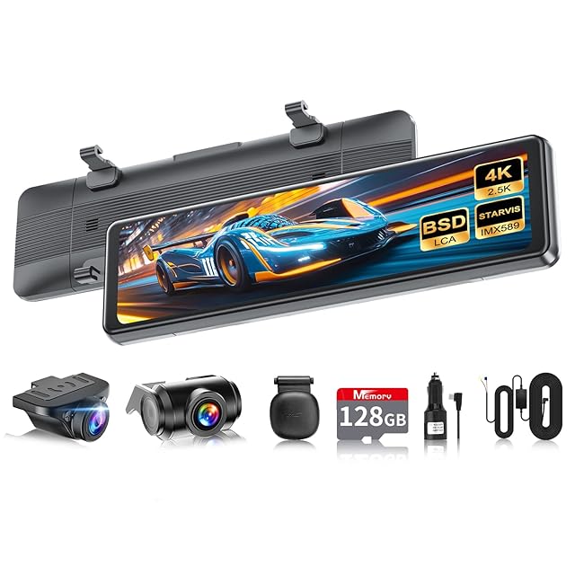 【再進化分離式・128超大容量カード付き・4K・BSD運転補助・LCA後方車両検出】 VANBARドライブレコーダー ミラー型 分離 【フロントカメラ4K+リアカメラ2.5K再進化】 IMX415センサー 800万画素 音声制御 スピード違反警報 WDR機能 バックガイドライン 駐車監視 LED信号対応 GPS搭載 電波干渉対策 暗視機能 リアカメラ 防水 ドラレコ 日本語対応