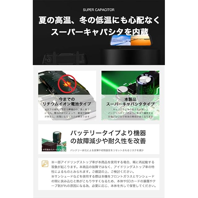 ✅【 Super Night vision スマホ感覚で楽々タッチ操】前後カメラとも標準HDR機能を搭載し、さらに当社独自技術「SuperNightVision」による従来品より夜間などの暗い環境でも明るく録画でき自転車や歩行者もくっきりと映します。IPS液晶タッチパネルを触れるだけで各操作が可能です。68ページにも及ぶ読みやすい大きめな文字の詳細な日本語説明書を付属しています。取付、設定方法から使用方法よくある質問や商品仕様等わかりやすく記載してます。初期設定やいざという時にお役立てください。メーカー正規1年保証付きで安心してご使用頂けます。フロントカメラは付属ゴムバンドで純正ミラーにカンタン取付。また、大型車、ミニバンまで対応可能リアまで余裕の8mリアカメラケーブル付です。本機の電源供給は基本的に付属のシガープラグコードにて行なわれます。専門知識がなくても、簡単にお車へ取付が可能です。