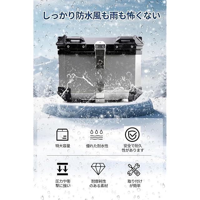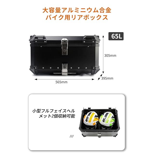 【セット内容&品質保証】:65Lキットの内容:リアボックス×1、取り付けベース×1、インストールツール×1、鍵×2、反射ステッカー×2。寸法:565mm×395mm×305mm、重さ:7.98KG。この商品は1年間の保証が付いています。製品が出荷される前に、当社はすでに十分な検査を行いました。もしあなたが受け取った製品に破損、破断、汚れなどの問題があれば、輸送過程による可能性があります。すぐに当社に連絡してください。当社は最高のアフターサービスを使用して、あなたが直面している問題を解決するために、できるだけ早く無料で交換したり、全額返金したりします。連絡先:アマゾンページの「アカウントサービス」→「注文履歴」→「販売者への連絡」をクリックして、弊社にメールを送ります。弊社はメールを受け取った最初の時間にご連絡します。