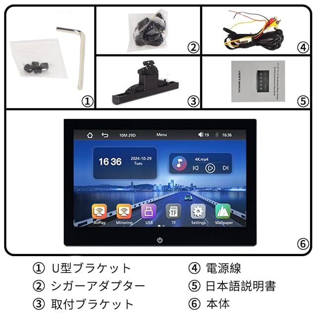 【ヘッドレストモニター&Airplay/ミラーリング機能】携帯のUSBケーブルを接続すれば、Airplay/ミラーリング機能簡単実現できます。Android/iPhone 両方できます。iPhone/Android画面から本機へ同時に転送します。会議、プレゼンテーション、パーティー、ゲーム、映画鑑賞など、幅広い用途で活躍します。