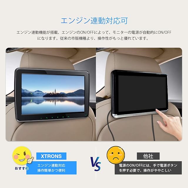 ヘッドレストモニター XTRONS 11.6インチ リアモニター IPS大画面 後席 モニター フルHD 広視野角 1366*768 HDMI機能付き 1080Pビデオ再生 USB SD エンジン連動1個セット