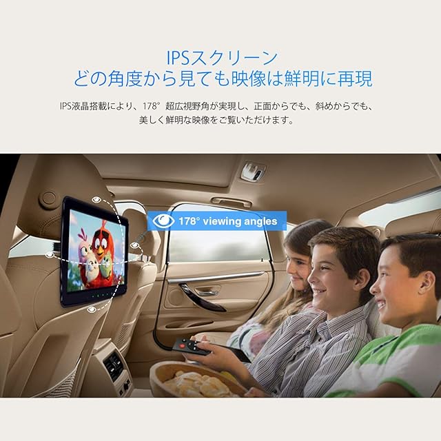 【IPSスクリーン&スピーカー内蔵】本リアモニターは178°超広視野角で、IPS液晶を採用します。横側から見て超綺麗です。スピーカーが搭載され、高音質のサウンドを実現できます。