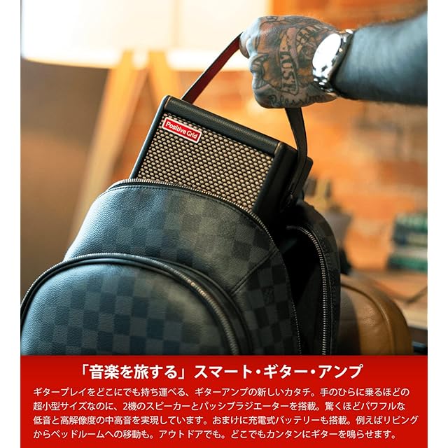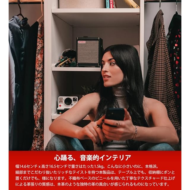 【「音楽を旅する」スマート・ギター・アンプ】ギタープレイをどこにでも持ち運べる、ギターアンプの新しいカタチ。手のひらに乗るほどの超小型サイズなのに、2機のスピーカーとパッシブラジエーターを搭載。驚くほどパワフルな低音と高解像度の中高音を実現しています。おまけに充電式バッテリーも搭載。例えばリビングからベッドルームへの移動も。アウトドアでも。どこでもカンタンにギターを鳴らせます。
